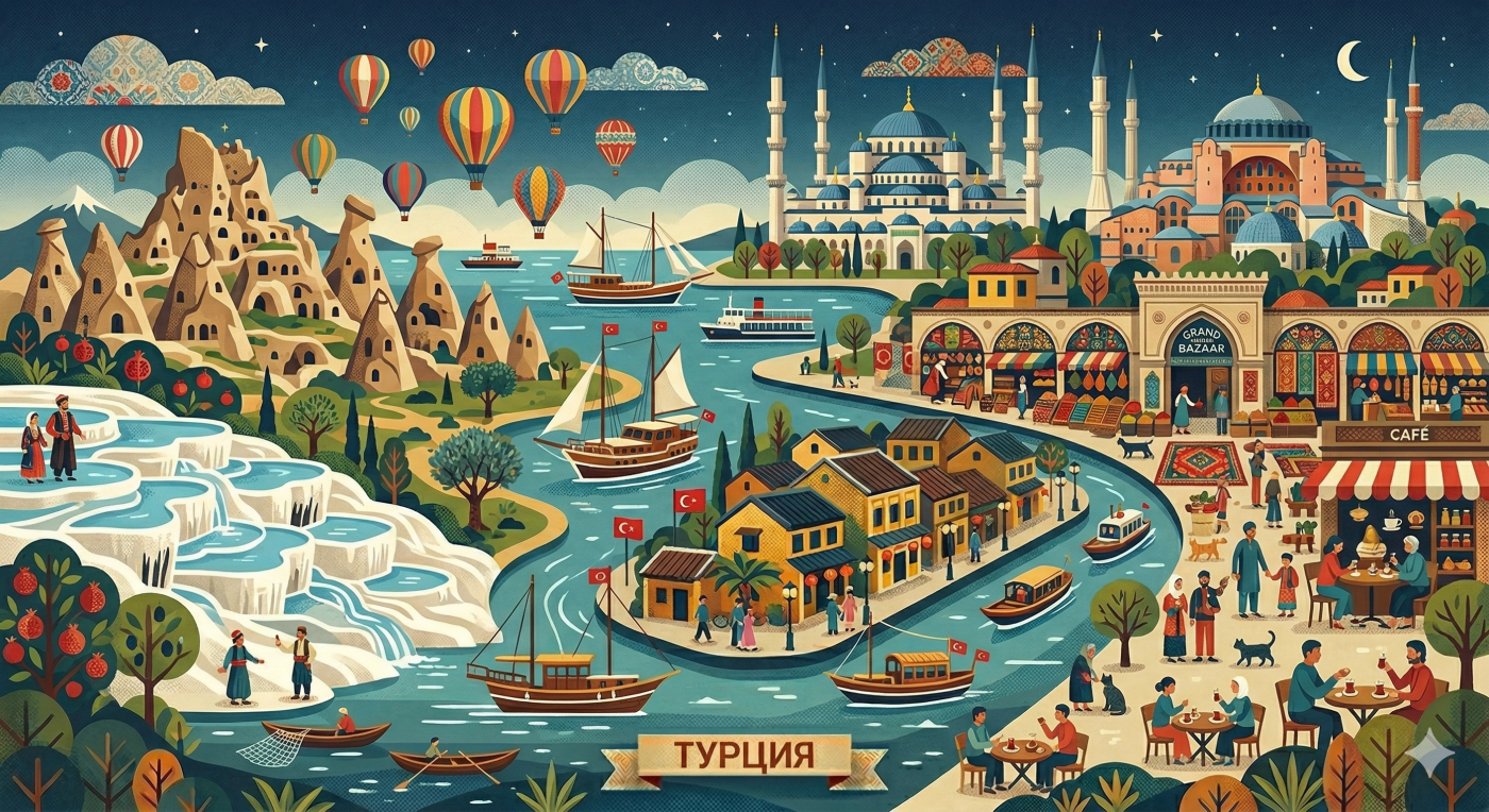 В Турции есть все, что нужно туристу: отели на любой вкус - от роскошных до экономичных, пляжи всех видов, благоприятный климат, первоклассный сервис, известные всему миру достопримечательности и, конечно, столь любимая россиянами система All Inclusive, избавляющая от лишних трат и хлопот.